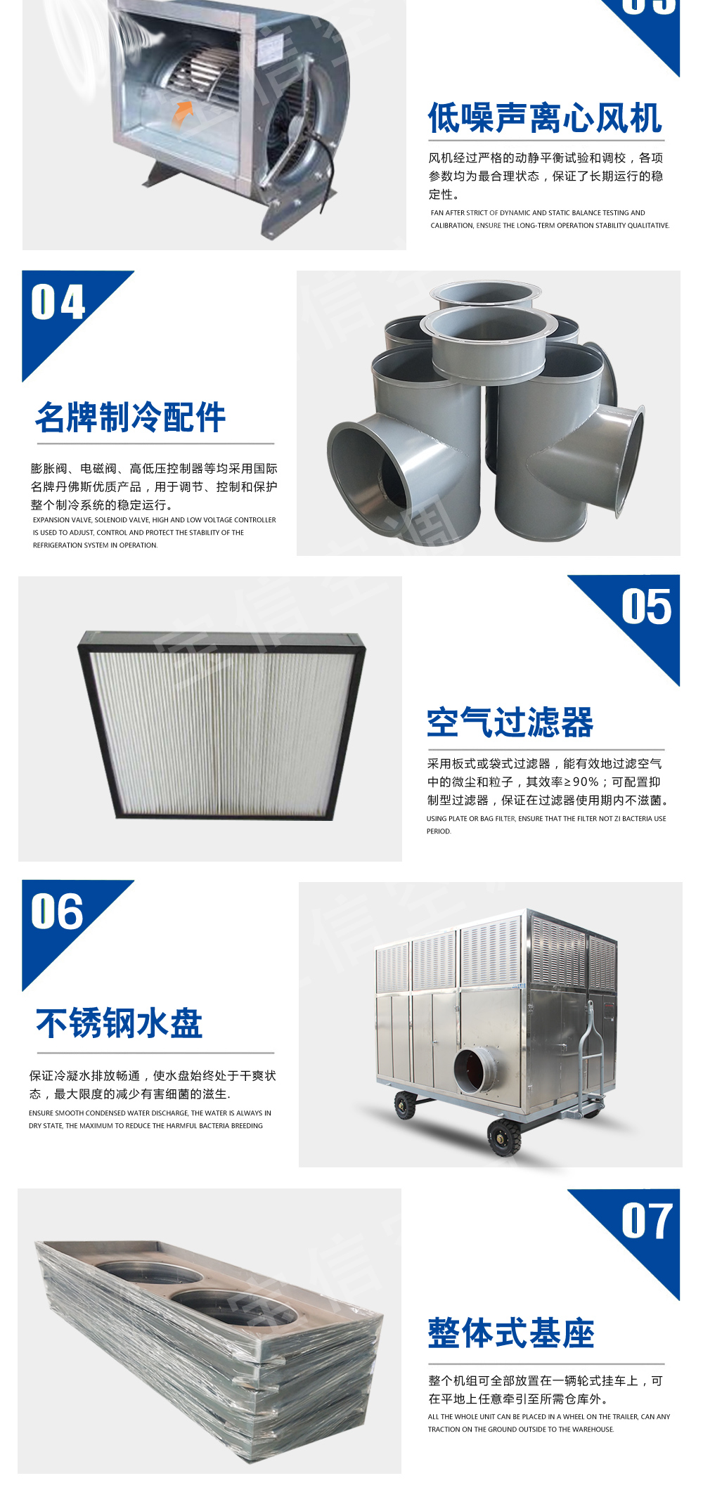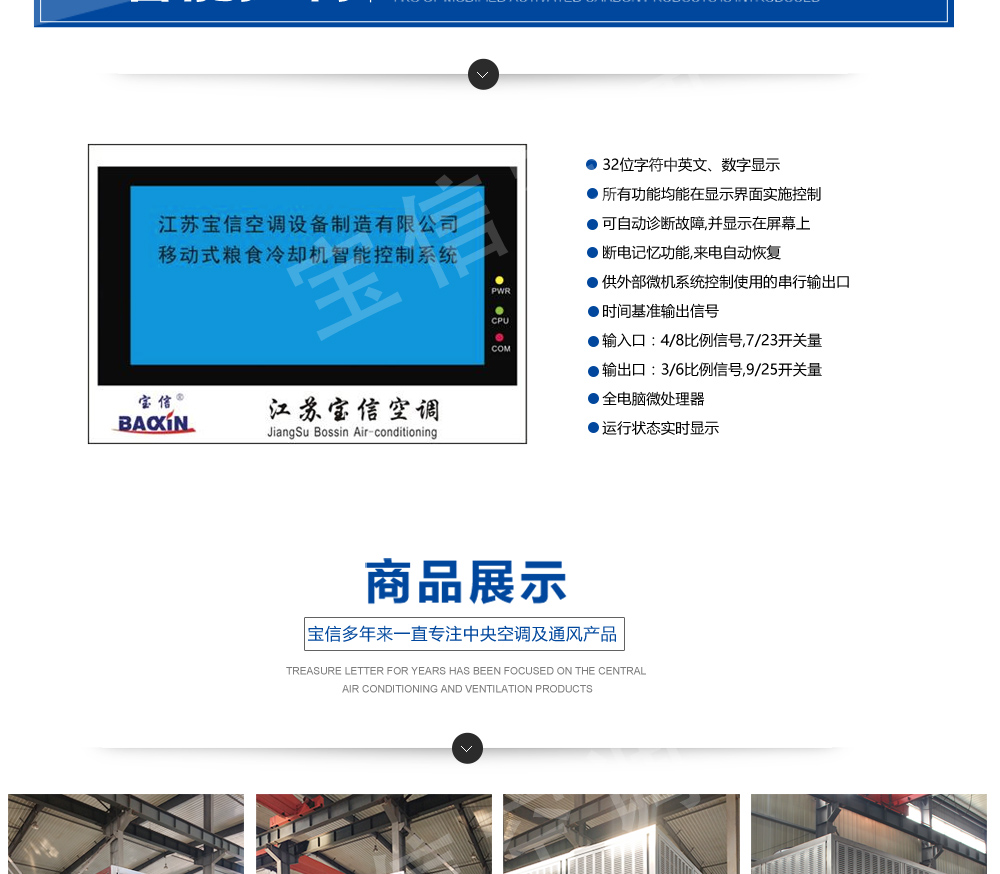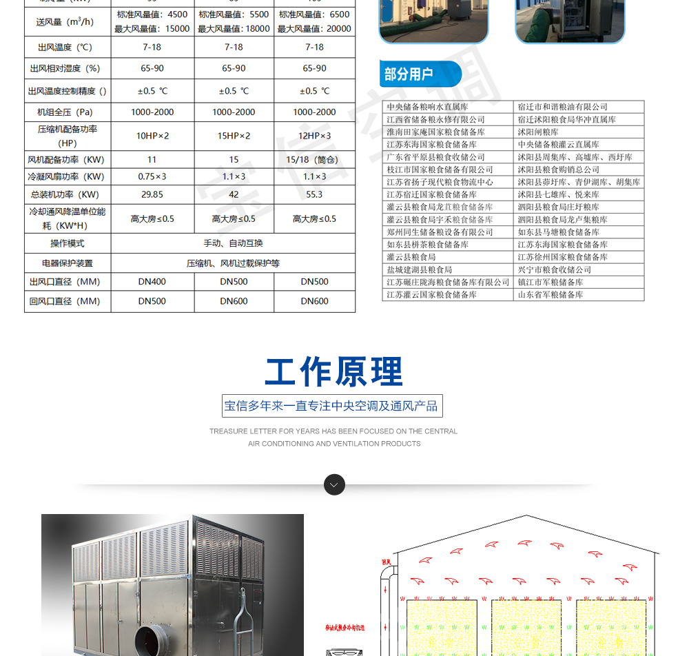 ?移動式糧食冷卻機組主要由風(水)冷壓縮機制冷除濕系統,空氣循環系統,智能控制系統和移動式基座組成。該空凋設備是專門針對我國糧食倉儲環境特點和氣候特征綜合分析而特別設計的移動設備,是各糧食儲備庫實現綠色儲糧、科學保糧目標的重要保障手段,其性能達到國內先進水平。該產品適用于:應急處理發熱糧食、安全保存高水分糧食、優質稻谷的低溫儲存等,可用于平房倉、淺圓倉、立筒倉的糧食冷卻除濕作業。