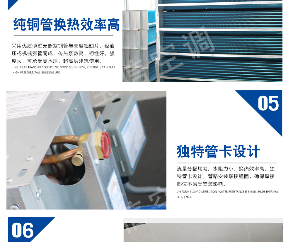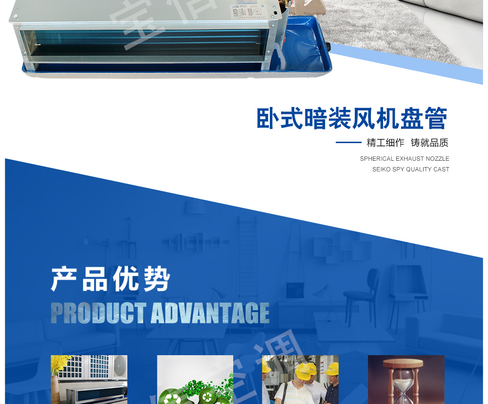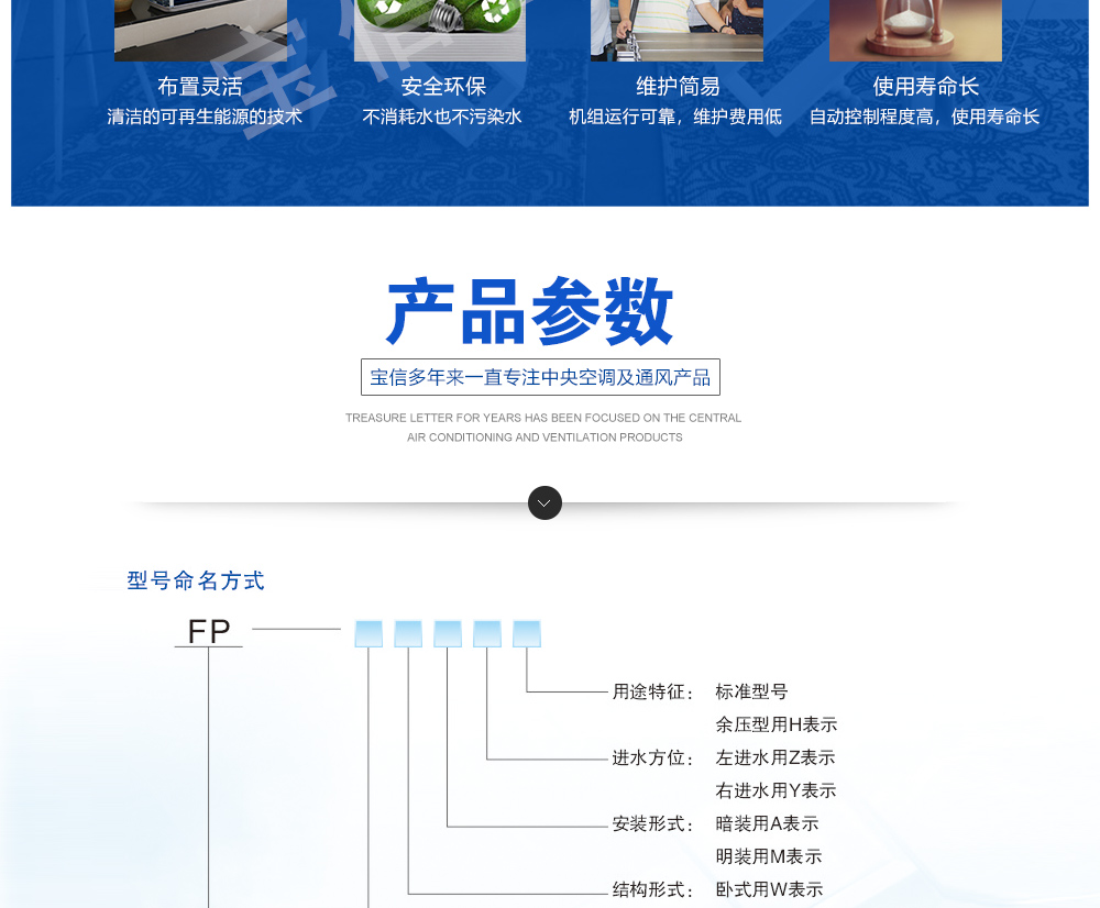 FP系列風(fēng)機(jī)盤管機(jī)組吸收了國(guó)內(nèi)外同類產(chǎn)品的先進(jìn)強(qiáng)項(xiàng)技術(shù),依據(jù)國(guó)家相關(guān)標(biāo)準(zhǔn),并經(jīng)反復(fù)試制和測(cè)定,高效率的完成了一系列的技術(shù)設(shè)計(jì)改進(jìn),故而性能優(yōu)越、用途廣泛、品種齊全、效率高、故障少、噪聲低,其品種有臥式暗裝、臥式明裝、立式暗裝、立式明裝、卡式機(jī)組等系列,與新風(fēng)機(jī)組配套后廣泛應(yīng)用于賓館、醫(yī)院、辦公用房、高級(jí)會(huì)議廳、展覽廳等低噪聲場(chǎng)所,是集中式空調(diào)系統(tǒng)理想的末端裝置。
