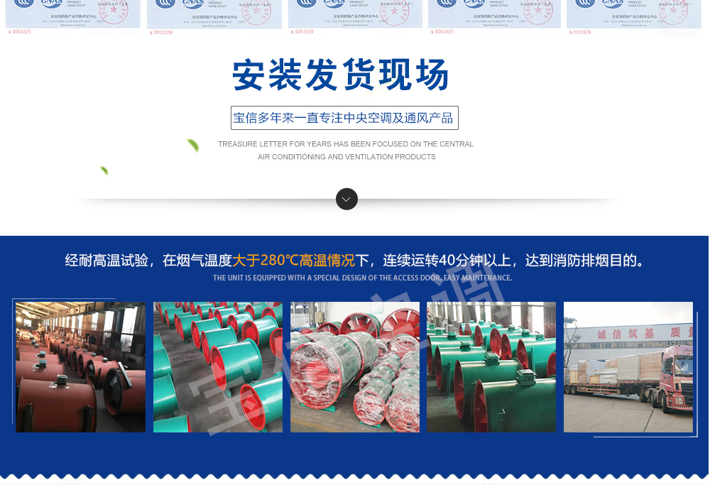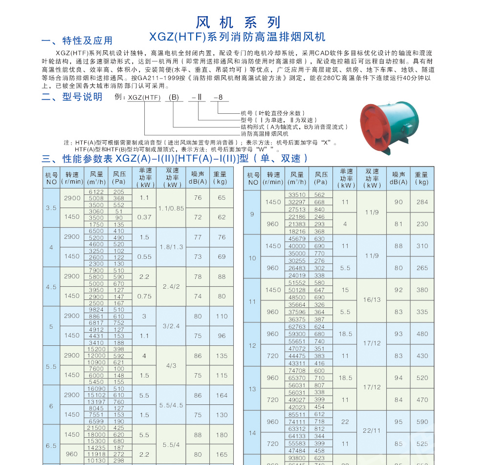 XGZ(HTF)系列消防高溫排煙風(fēng)機(jī)適用于高層建筑、地下建筑及隧道、烘房等通風(fēng)換氣機(jī)或高溫排煙。能在280℃高溫條件下連續(xù)運(yùn)轉(zhuǎn)30分鐘以上,介質(zhì)溫度100℃條件下連續(xù)運(yùn)行20小時/次不損壞,是理想的消防必備設(shè)施。