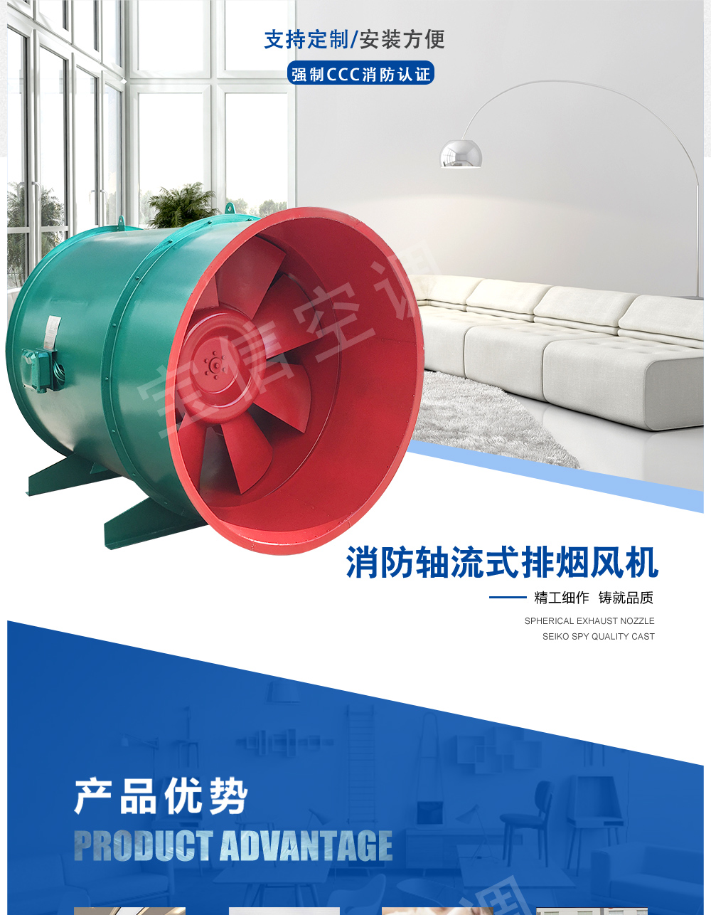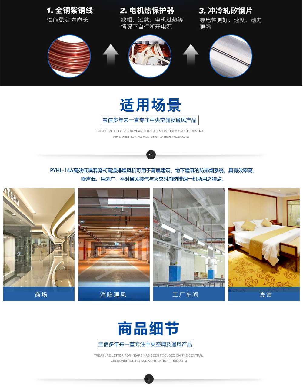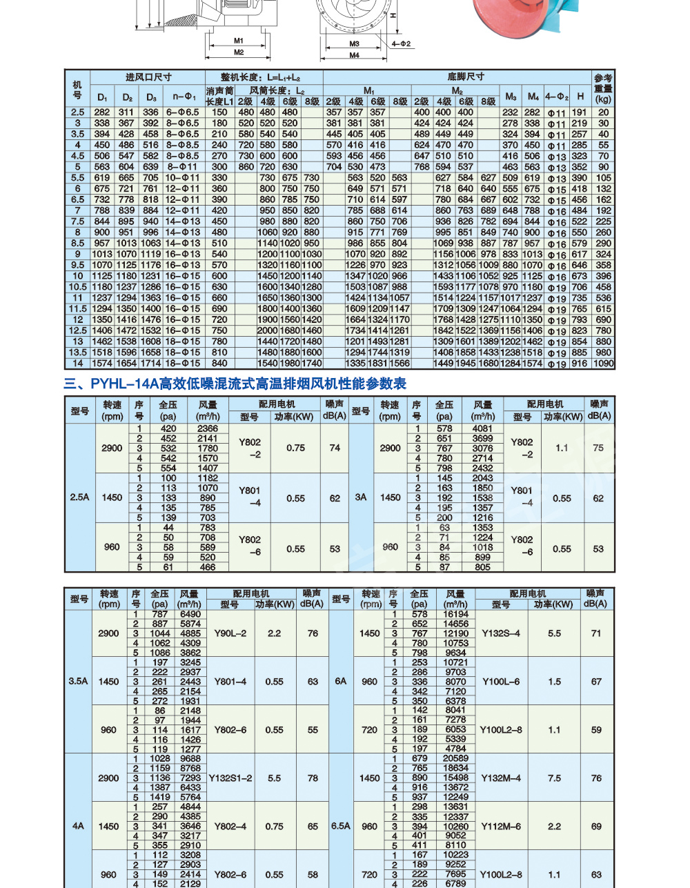 PYHL-14A高效低噪混流式高溫排煙風機可用于高層建筑、地下建筑的防排煙系統。具有效率高、噪聲低、用途廣,平時通風接氣與火災時消防排煙一機兩用之特點。