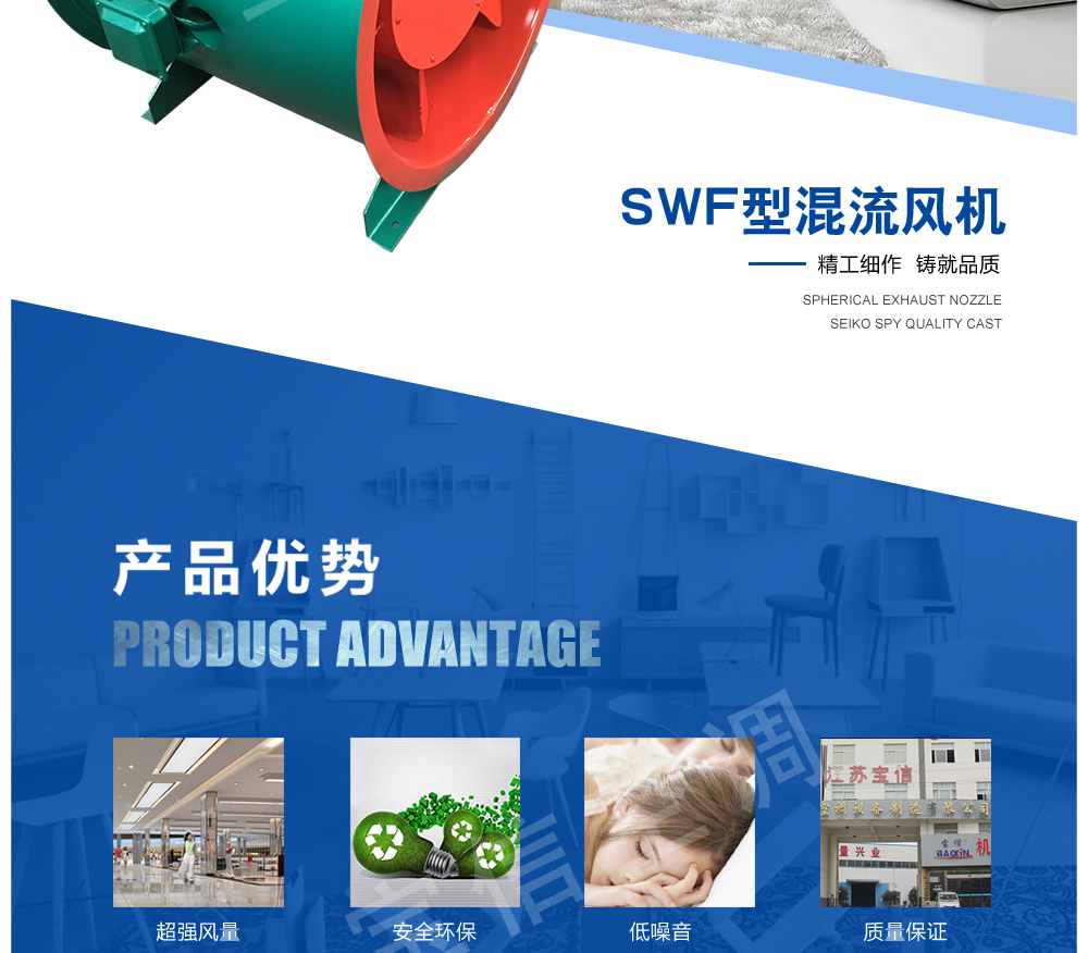 混流式風機廣泛用于公共建筑、民用建筑及工礦企業(yè)的送排風系統(tǒng)中。