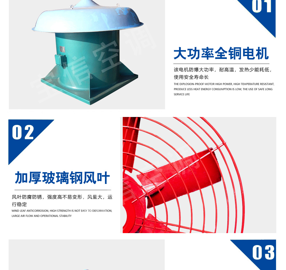 a、軸流式屋頂風機:型號為DWT-Ⅰ型,宜用于中低壓、大流量的使用場合。同時根據用戶需要還可以設計成雙向旋轉可逆式,具有正反工況等效的特點;?